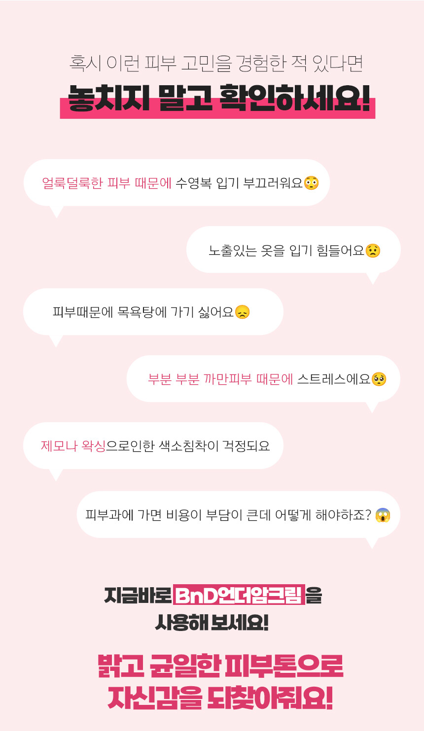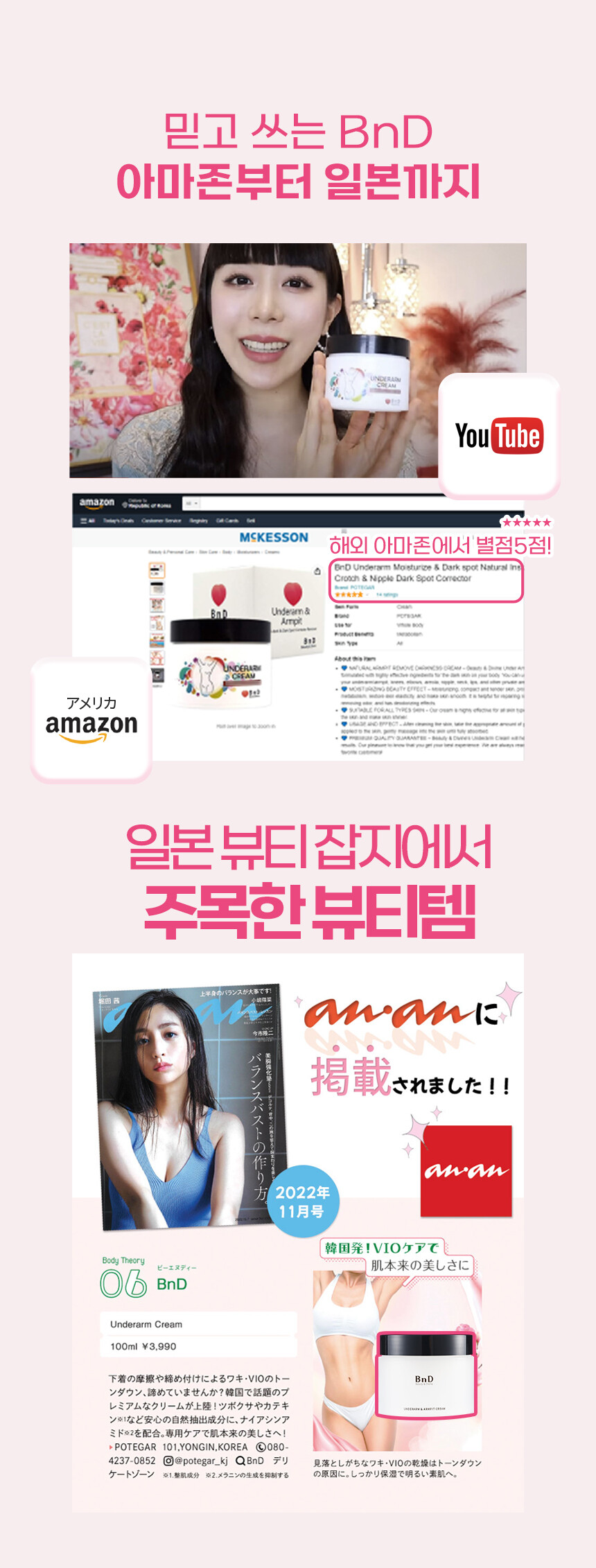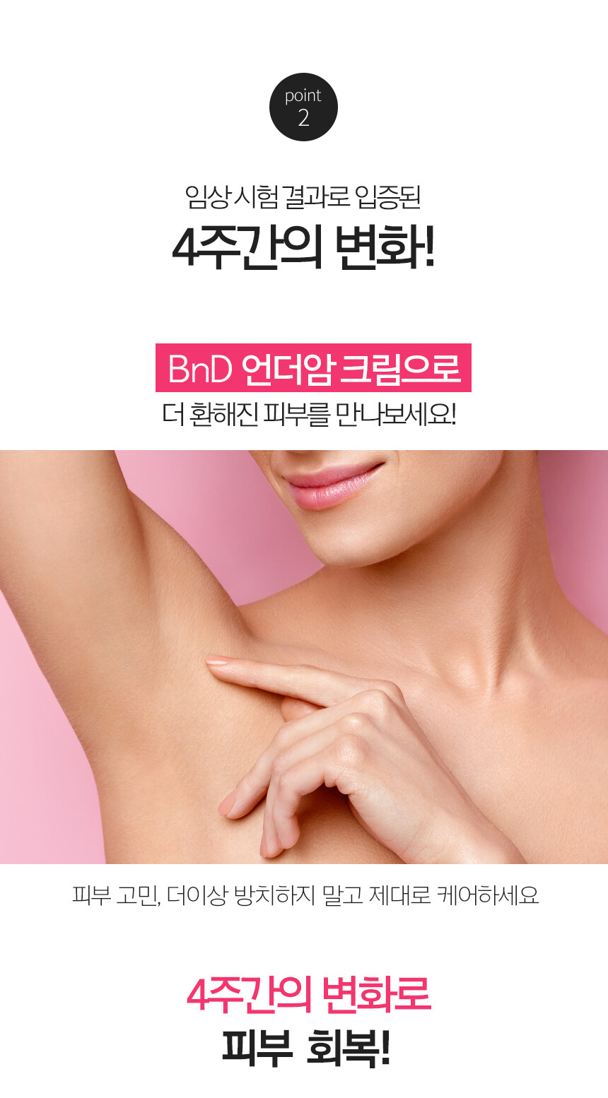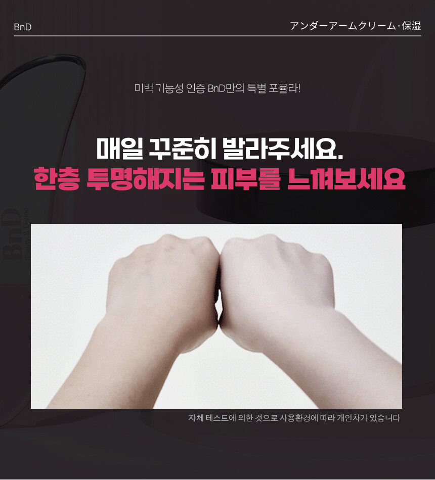 BnD 겨드랑이미백 크림 팔꿈치미백 Y존 피부 색소침착 바디 미백크림